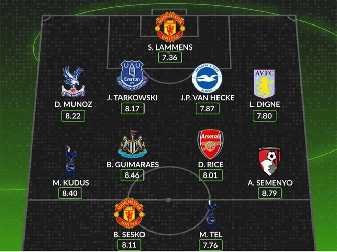 - 英超 | 外媒评英超第7轮最佳阵容:曼联、热刺两人入选,赖斯在列