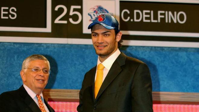 德尔菲诺的名字想必很多老球迷都不会陌生,他身高1米98,司职锋卫摇摆人,成名于意大利联赛,是2003届NBA白金一代的首轮25号秀,顺位比帕金斯、巴博萨、约什霍华德、帕楚里亚、莫威廉姆斯、詹姆斯琼斯、科沃尔等人都要高。不仅如此,德尔菲诺还是阿根廷史上第一个NBA首轮秀,他的“前辈”吉诺比利虽然比他更早进入NBA,成就也显然更高,但只是1999届的次轮28顺位。