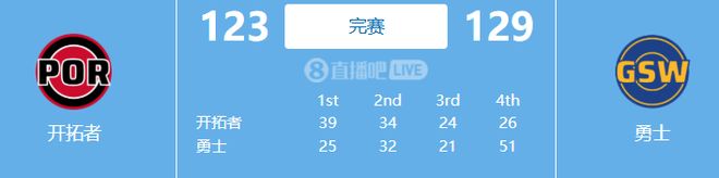 - NBA | 大逆转!勇士129123赢开拓者,这一战,这4名球员的表现令人失望