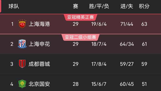 - 中超 | 中超争冠形势:海港领先申花2分,末轮战平英博即夺冠