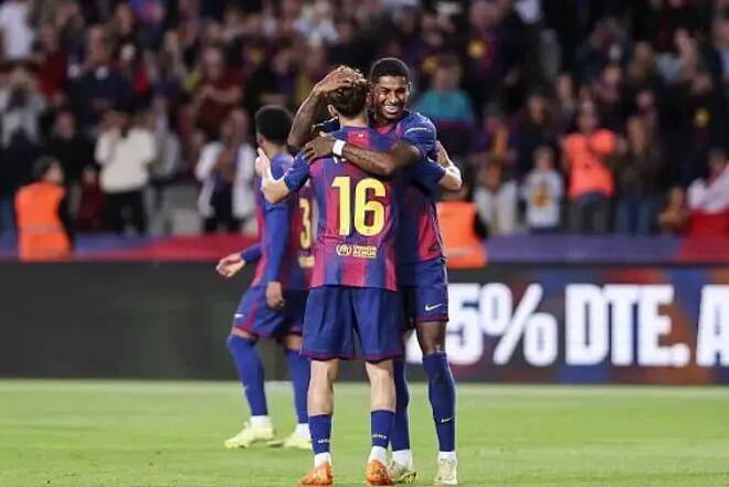 开赛之后巴萨迅速就进入状态,这一点的确是可喜的,看的出他们对比赛的认真。第9分钟在高压逼抢之下对手在出球时失误,给巴萨打出了迅速反击的机会。巴尔德抢截后给到了亚马尔,拿到了射门机会的年轻人一扣一射在时机上的确是淋漓尽致的展现了自己的天赋的,确实很有实力。就此,巴萨1-0的。