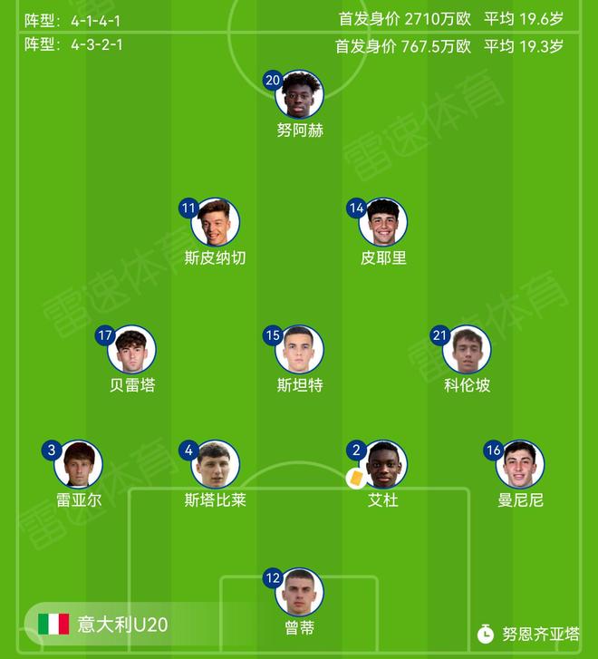 此前有老哥说过,U23这一代还算不错,起码有几个稍微值得期待的苗子;目前预备队战绩很一般,值得期待的球员就更少了;而此后更年轻的梯队当中,几乎就没什么值得一提的球员。狗哥想说,非也非也,因为二队建立抽干了预备队,导致U18整体提拔到了预备队,依次后面国际米兰的各个梯队都处于以小打大、人手紧缺的状况,所以大部分苗子只有15、16岁,如果非要说某个球员有多么多么值得期待,好比是长得比关公都好看——颜值过枣(言之过早)了。不过,狗哥观察了一下本届国米U17的表现,依然有几个值得划重点的小球员:1、杰齐,这个自然不用多说,狗哥在此前的青训球探系列文章当中,曾经详细介绍过杰齐,这里不再赘述。杰齐目前主要还是在U17和U18来回切换,最近还经常被卡博内招入预备队参加欧青联的比赛,整体上已经有了冉冉升起的希望之星的苗头。上周,国际米兰官方宣布与杰齐完成续约。2、小小卡尔博尼(Cristiano Carboni),2009年4月5日生人,阿根廷人,拥有意大利国籍,U17联赛出场9次打入2球,位置是攻击型中场。此前有人说他比自己的两个哥哥都更有天赋,说实话,目前没太看出来,变向的能力和爆发力还达不到受伤之前小卡尔博尼的程度。3、U17第一队长,中后卫,安德烈-多纳托(Andrea Donato),2009年1月14日生人,意大利,出生于米兰内塞的标准意大利小伙。代表意大利U17出场3次打进1球;意大利U16出场8次;U17联赛出场10次打进2球;头球功力十足,技术特点有些类似亚历克西乌的翻版。4、主力门将:卡洛-加利埃拉(Carlo Galliera),2009年11月4日生人,意大利;U17联赛8次出场;U19替补席看饮水机1次;U23替补席啦啦队1次;意丙杯替补席啦啦队1次;5、主力双前锋,就是本场比赛进球的两人:中锋达德(Emmanuel Dade):16岁,2009年2月17日生人,爱尔兰裔意大利人,U17主力中锋;赛季9次出场4球1助攻;边锋马塔雷塞(Thomas Matarrese):尚未满16岁,2009年12月15日生人,意大利,U17主力左前锋,也曾出任中锋和攻击型中场;赛季10次出场5球1助攻。6、一前一后双中场:马蒂亚-帕努托(Mattia Pannuto),2009年4月29日,意大利,主力后腰,U17联赛绝对核心,10次出场助攻1次,几乎场场打满全场。塞萨雷-莫罗斯(Cesare Morosi),2009年7月21日,出生于意大利布雷西亚,主力中前卫,10场1球2助攻。两人经常同时首发,像极了当年他们的师兄小小斯坦科维奇与博沃的组合,两人都有很强的奔跑能力,一攻一守配合默契。7、伟大的意大利的左后卫传统:爱德华多-达里奥-罗卡(Edoardo Dario Rocca),2029年10月26日,意大利,主力左边后卫、边翼卫;意大利U17出场3次;U17联赛10次出场助攻4次;队内第一定位球手,小技术出色。PS:明星的作用实际上很具体,意大利的伟大左后卫的神迹在意大利小球员的心中影响深远,在国际米兰阵中,左边后卫的好手也非常多。三、其他梯队1、意大利U19(三场欧青赛U19资格赛全部战罢,意大利U19两胜一平积7分,小组第一晋级),四人:伊德里苏(73+90+84分钟,1个助攻);莫斯科尼(60+90+54分钟,1个进球);马泰奥-科基(73+82+0分钟,1个进球);切尔佩莱蒂(30+0+0分钟,1个进球)。U19这一届目前来,国际米兰、罗马、AC米兰、亚特兰大为主要国脚提供者。2、意大利U17(U17世界杯,意大利将在四分之一决赛迎战点球淘汰乌干达的非洲劲旅布基纳法索,这个队小组赛战胜了德国U17,肌肉感十足且速度奇快,意大利不一定能顺利过关),一人:博维奥(0+0+90+0分钟)博维奥这个出场时间,狗哥不是很理解。在U17世界杯资格赛、以及此前在欧青赛U17小组赛当中,博维奥都是绝对主力首发中卫,结果世界杯正赛到现在只出场了一次,打满九十分钟,然后就又替补了;如果前两场小组赛,博维奥有伤,还可以理解,拉齐奥出身的主帅弗兰切斯基尼甚至不得已让中场球员博拉西奥担任中后卫的角色;但是在首发一次且表现极为出色的情况下,紧接着的两场淘汰赛,博维奥和博拉西奥居然双双替补了!结果就是,小组赛只丢了一个进球的意大利U17,被乌兹别克斯坦在少一人作战的情况下打进了两个进球!所以这种防守组合,真的是没问题吗?3、意大利(U20联,两连败)斯坦特(0+90分钟);艾杜(外租佩尔戈莱特塞,2+90分钟);斯皮纳塞(14+90分钟);贝伦布鲁赫(31分钟);拉韦利(76分钟);德皮耶里(59+90分钟,1球);斯塔比莱(外租尤维斯塔比亚,90+90分钟);此前狗哥看到,在0比5客场不敌德国之后,有不少国内自媒体以“意大利青训崩塌”为标题,着实吸引了一波流量。不过,狗哥认为这多少有些夸大其词了。首先,赛事不重要。U20联类似于国家队的欧国联比赛,它是欧洲青年足球赛事体系的一部分,通常作为各国U20国家队的备战平台,用于锻炼年轻球员并为U20世界杯等大赛选拔人才。简单来说,这是一个积累经验、约等于友谊赛的比赛赛事,仅仅与U20世界杯有一定的关联(优胜者可以有U20附加赛资格)。其次,你看看主帅努恩齐亚塔排出的实验阵型、以及球员位置: