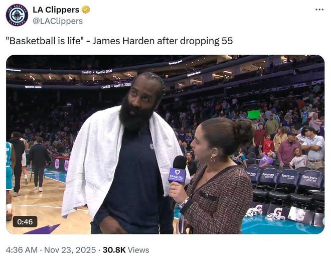 - NBA | 今夕何夕哈登爆砍55分生涯第25次50+追平科比!