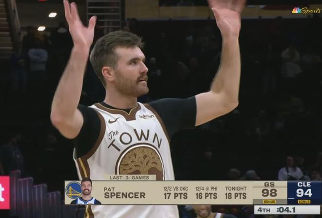 比赛进入最后五分钟,勇士连续失误,一度三分钟没有得分,骑士再度将分差追到5分以内。此时,又是斯潘塞站了出来,他先是过掉加兰,从莫布利和米切尔的合围中杀出,迎着亨特的补防抛投出手,球在筐上转了一圈掉入网中,骑士无奈喊出暂停。斯潘塞彻底释放自我,朝着观众席喊出了文章开头的那段话,这一刻他真真正正地成为了一名NBA球员。终场结束前4秒,斯潘塞两罚两中杀死比赛悬念,随后朝着主场的克利夫兰球迷挥手告别,嘲讽力拉满。毫无疑问,在这场比赛中,他就是故事的主角。