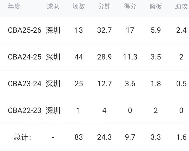 今年是王浩然在CBA的第4个赛季,这赛季他打了13场比赛,场均上场32.7分钟,能得到17分5.9篮板2.4助攻,投篮命中率48.1%,场均命中2.3记三分,三分球命中率高达43%,属于CBA顶级水平。别看王浩然在CBA已经打了4个赛季,其实他今年才21岁,属于真真切切的年轻人。王浩然能够打出来,完全是靠着自己一步一个脚印走出来的,菜鸟赛季他只获得1次出场机会,后来他不断训练不断提升,这才慢慢获得主教练信任。